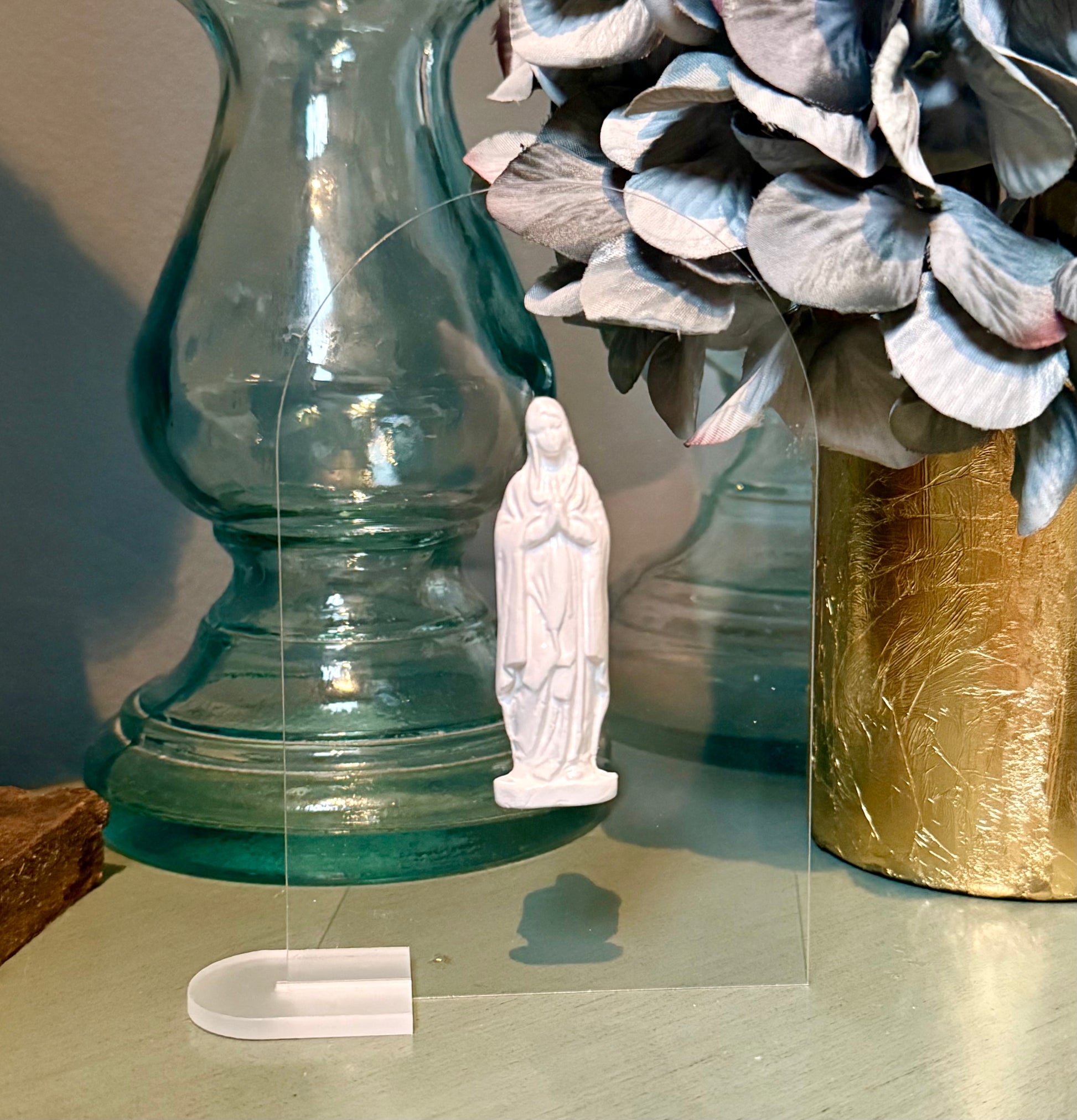 Add a touch of elegance and warmth to your space with our Mary Stand. This simple yet beautiful 4x6 stand features a mother and child design.